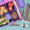 Менюто е леко и в концепцията Перфектна порция и е приготвено в най-нежната кутия за храна Lunchbox Лавандула.